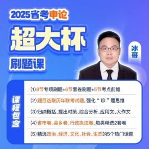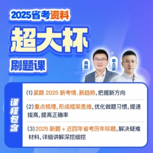通过参加《2025省考超大杯刷题课(五合一)》课程,考生能够在实际考试中更加从容,精准应对各种题型,快速提高自己的综合素质和应试能力。